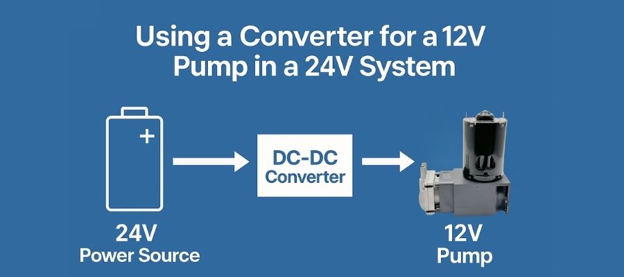 Yes, you can use a DC-DC “buck” converter to power a 12V pump from a 24V source. However, this adds complexity, cost, and another potential point of failure to your system.