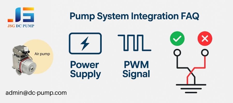 Key integration issues involve power supply sizing, PWM control, and voltage mismatch. Always oversize your PSU by 25-30% to handle inrush current, and never connect a pump to the wrong voltage or wire two pumps in series.