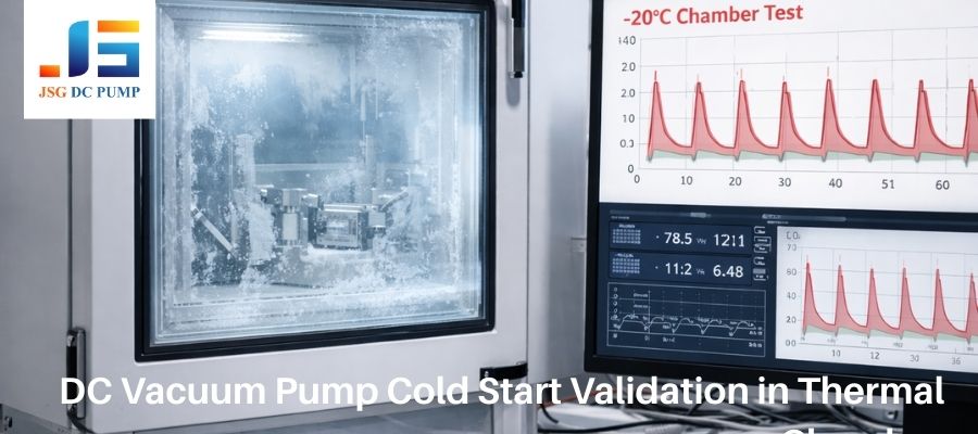 DC vacuum pump cold start test at –20°C in low-temperature chamber