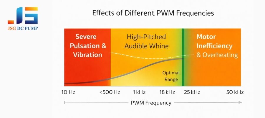 There is no single “best” PWM frequency; it’s a trade-off. Choosing the right one requires balancing electrical and mechanical factors. If the frequency is too low (e.g., below a few hundred Hz), the pump’s output will physically pulsate with each pulse, and the jerky motion will be severe. If the frequency is in the human hearing range (roughly 1 kHz to 18 kHz), you risk creating a loud, high-pitched whine as mechanical parts resonate. This is a common cause of product noise complaints.