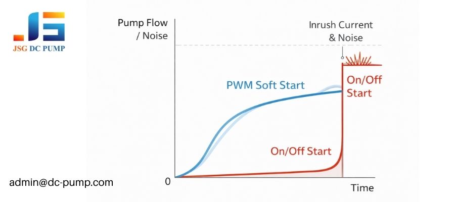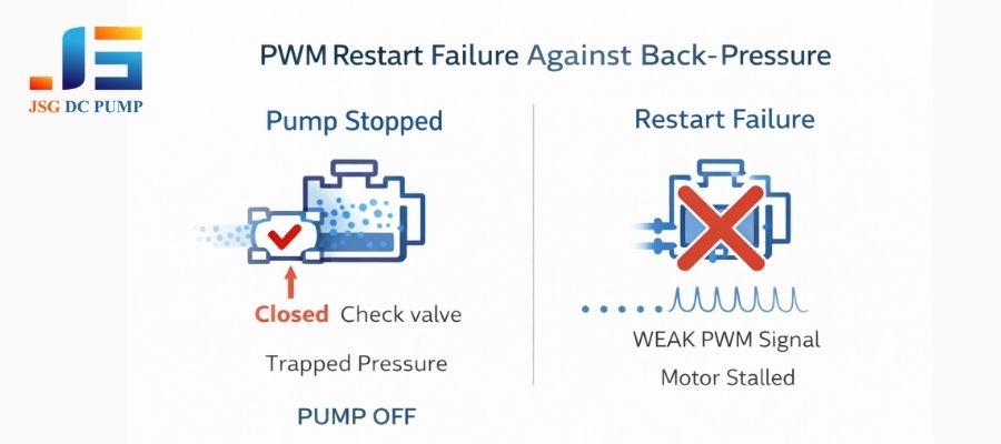 This is why you often need a “kick-start”—starting at a higher duty cycle (e.g., 70%) for a fraction of a second before throttling down. The third, and most frustrating, is restart failure. If you stop the pump when the system has some back-pressure, the diaphragm might be stuck in a position where the motor needs maximum torque to move. A low-duty PWM signal will fail to overcome this pressure, and the pump will remain stalled.