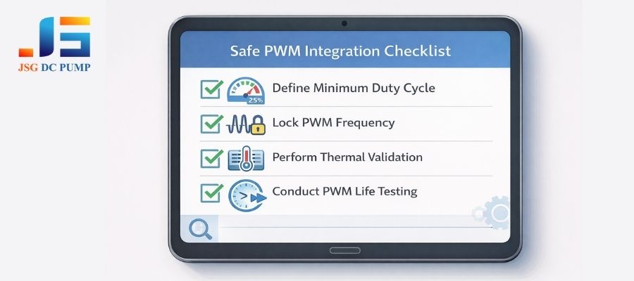 To move from a risky prototype to a reliable product, you need to enforce strict design rules. Here is the minimum validation we recommend at JSG DC PUMP:
