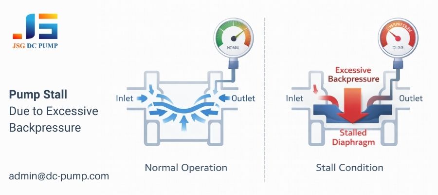 This condition is called “stall” or “dead-heading.” It happens when the system’s backpressure exceeds the pump’s maximum pressure rating. The pump motor is running, but it’s not strong enough to push the diaphragm against the high pressure, causing flow to stop and leading to instability and potential damage.