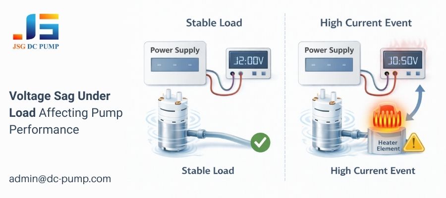 - Voltage Sag: Your power regulator or battery has high internal resistance. When the pump (or another component) draws a spike of current, the output voltage temporarily collapses. A pump receiving 11V instead of 12V will run noticeably slower.