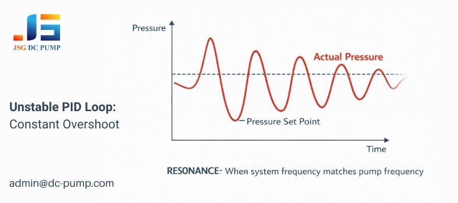 This is a classic software-induced instability. I’ve spent many hours helping customers tune their PID loops. They have a perfect sensor and a great pump, but the pressure just won’t stabilize. The controller is behaving like a novice driver: sees the car drifting right, so they yank the wheel left, overshooting the center line. They then yank it back right, overshooting again. The pump gets faster and slower, but the pressure never settles.